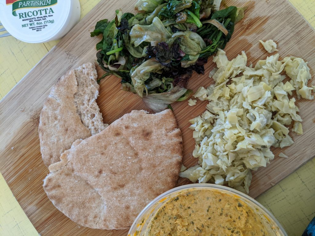 This dish also happens to be easy to modify for people managing chewing or swallowing difficulty. The crust of the majority of these IDDSI informed recipes are pregelled, as bread is a sneaky challenge item for dysphagia or dental issues. Chicken should be processed to the particle size that fits your current diet: pureed for level 4, minced to fit between fork tines for level 5 and diced to fit within the length across fork tines for level 6. Due to the fiber content of the vegetables, I have been using purees for the artichoke and spinach portions, which blends easily with the ricotta-yogurt base. Even for those without texture restrictions, this creates a creamier, more balanced flavor base for the pizza.